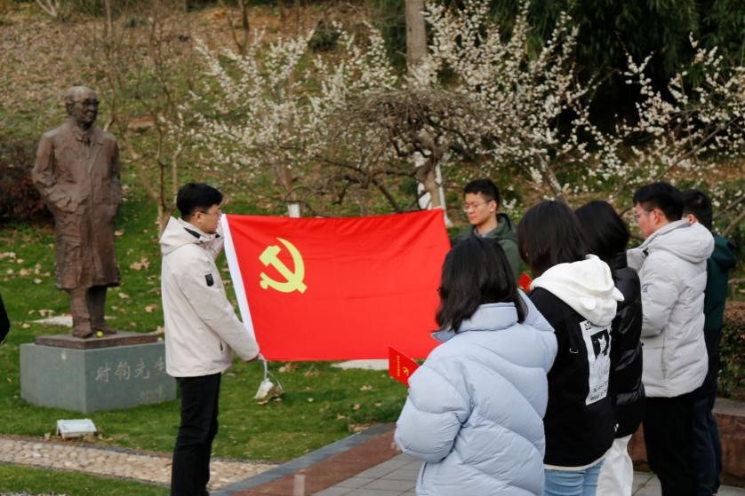 接着,研究生暖通支部书记李由老师致辞:“今天我们在时钧园举行入党宣誓仪式,意义非凡,作为一名工大学子,不止要学好党史国史,也应该知校史、明校情,要结合党史学习重温公司发展历史,深刻感悟时钧老先生不畏艰辛、勇攀高峰的精神。”