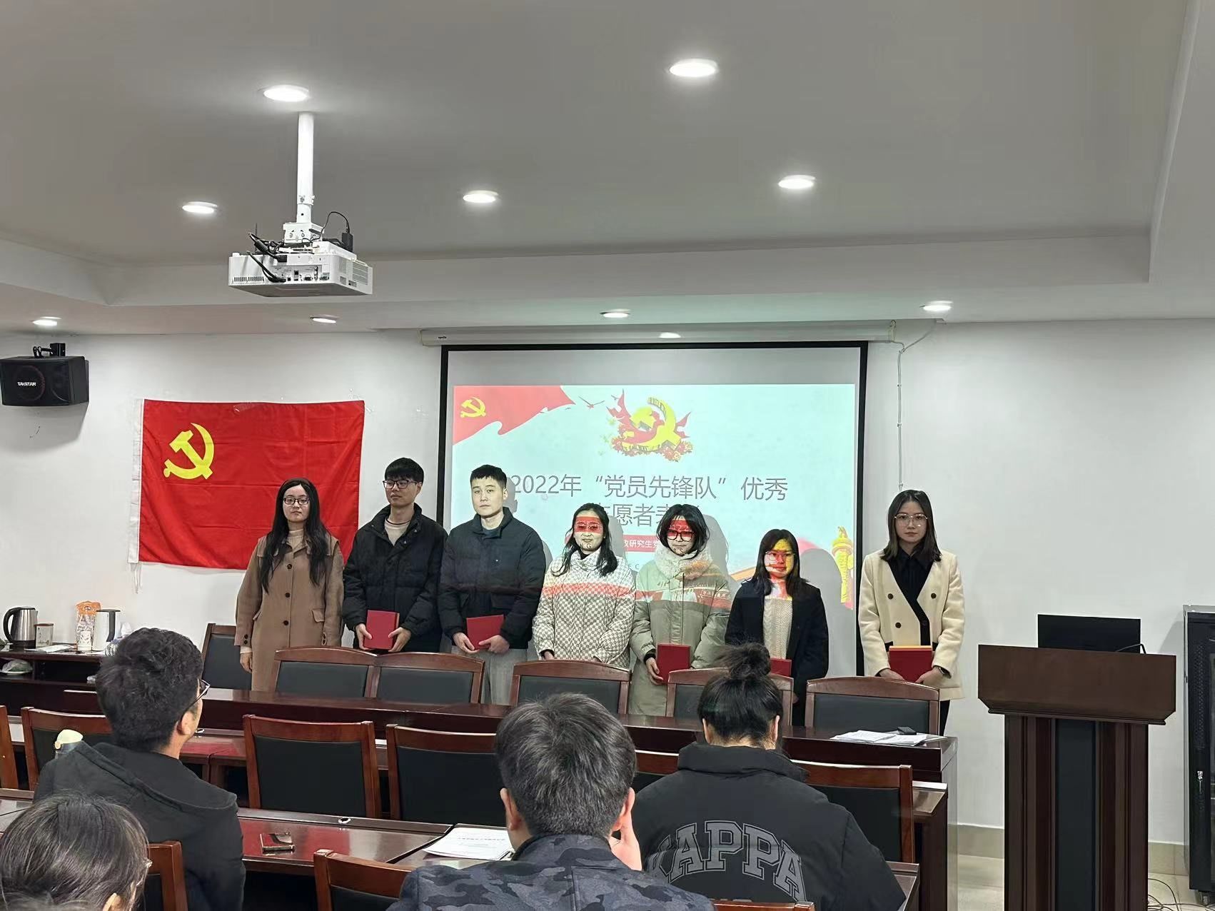 接着,韦昊东带领支部成员开展《感受雷锋精神的时代内涵与力量》专题学习,深入学习习近平总书记关于弘扬雷锋精神的重要论述,引导支部党员树立崇高理想追求,充分发挥党员模范带头作用,让学雷锋精神融入日常。最后毕继良、朱玲、邱尧、蒋红霞、许欣宇、王诗绮6位同志2022年积极参加志愿活动,被评为“党员先锋队”优秀志愿者,由丰晔老师颁奖。