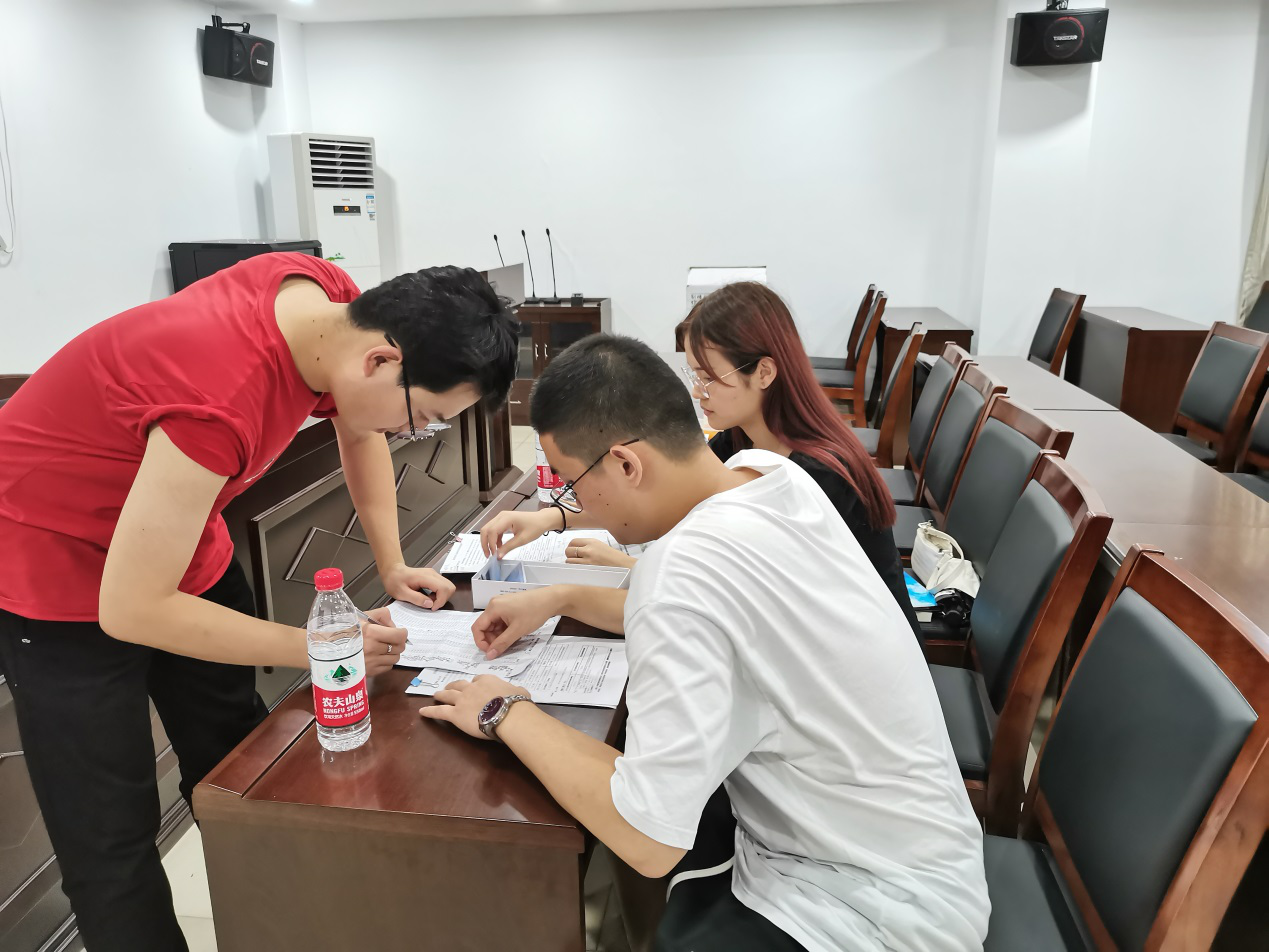 从上午9点开始,新生们陆续到达天工楼302A会议室报到,辅导员韩荣老师、研究生会的宋仁哲、研究生一支部书记孟雳媛同学仔细地核对每一位研究生的信息,为新生们详细介绍报到流程、解答同学们的疑惑,并发放校园卡、研究生手册等材料,让每一位研究生新生都安心、顺心、舒心地完成报到。