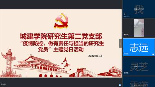 5月13日下午2点,研究生第二党支部全体成员在支部书记万志远同志的带领下开展了“疫情防控,做有责任与担当的研究生党员”党日活动。本次活动主题围绕当前关注的热点疫情问题,以疫情防控为主题,讲述自己对于疫情防控的心得体会或者身边的感人事迹。