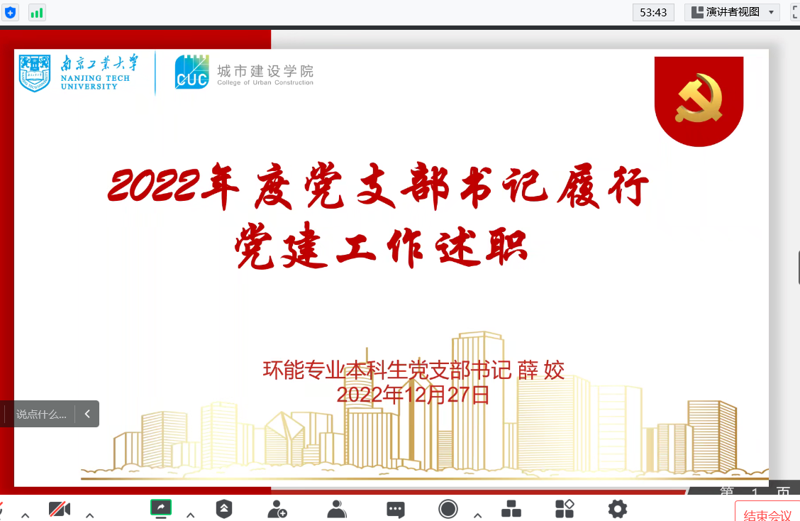 2022年12月27日,公司党委举行党支部书记党建工作述职评议会。城建公司全体党委委员,各党支部全体委员参会。会议由党委副书记孙家文主持。