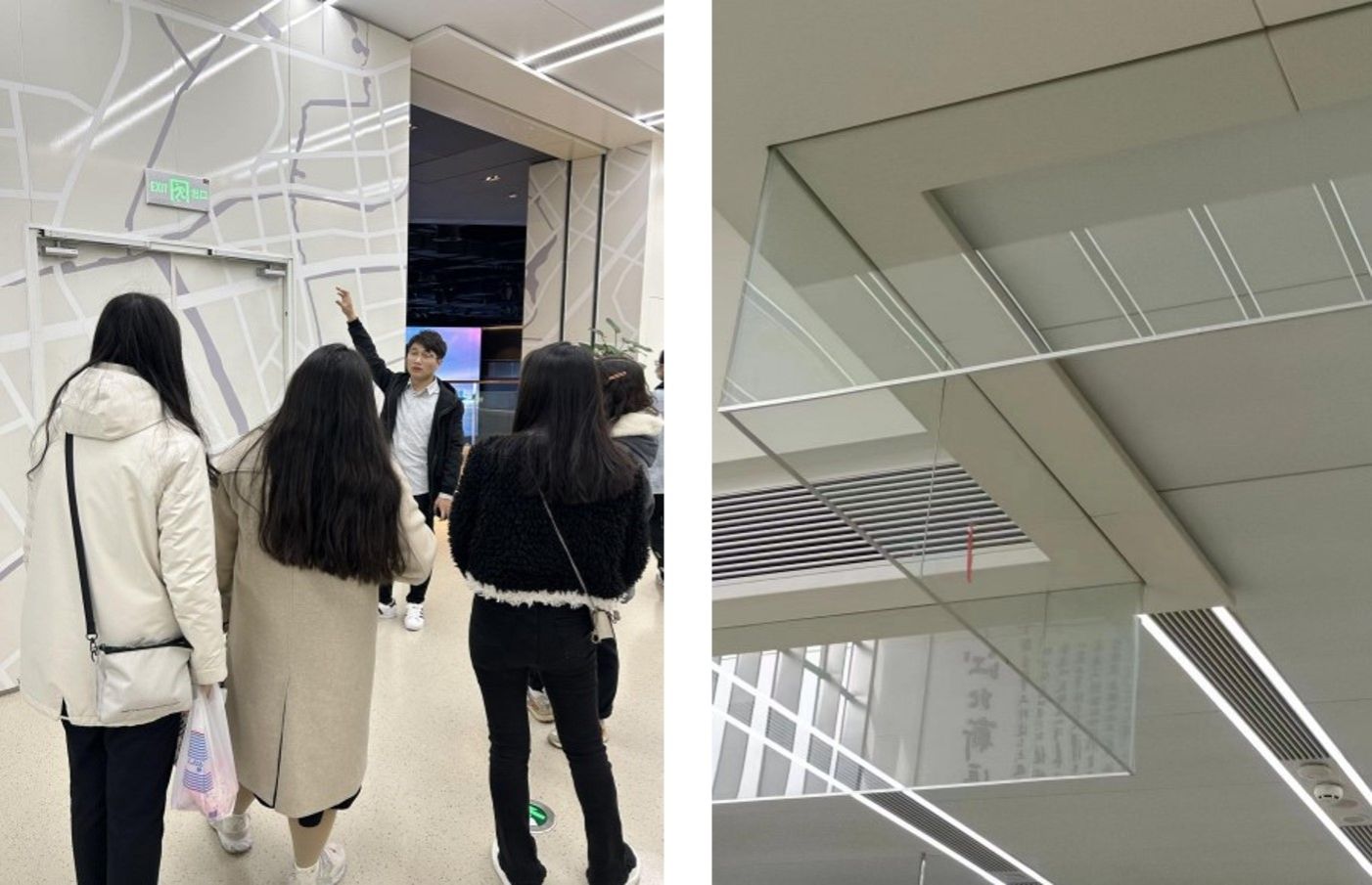 一大早,同学们如约而至,在任课教师孙老师的带领下,同学们井然有序的进入展馆。刚进大厅,映入眼帘的是空间为核心的三折幕,地面、立面、天花三面联动播放——一起走进最近的未来。全方位多角度呈现了新区发展演变和建设成果,生动诠释了江北新区主城的美好蓝图。