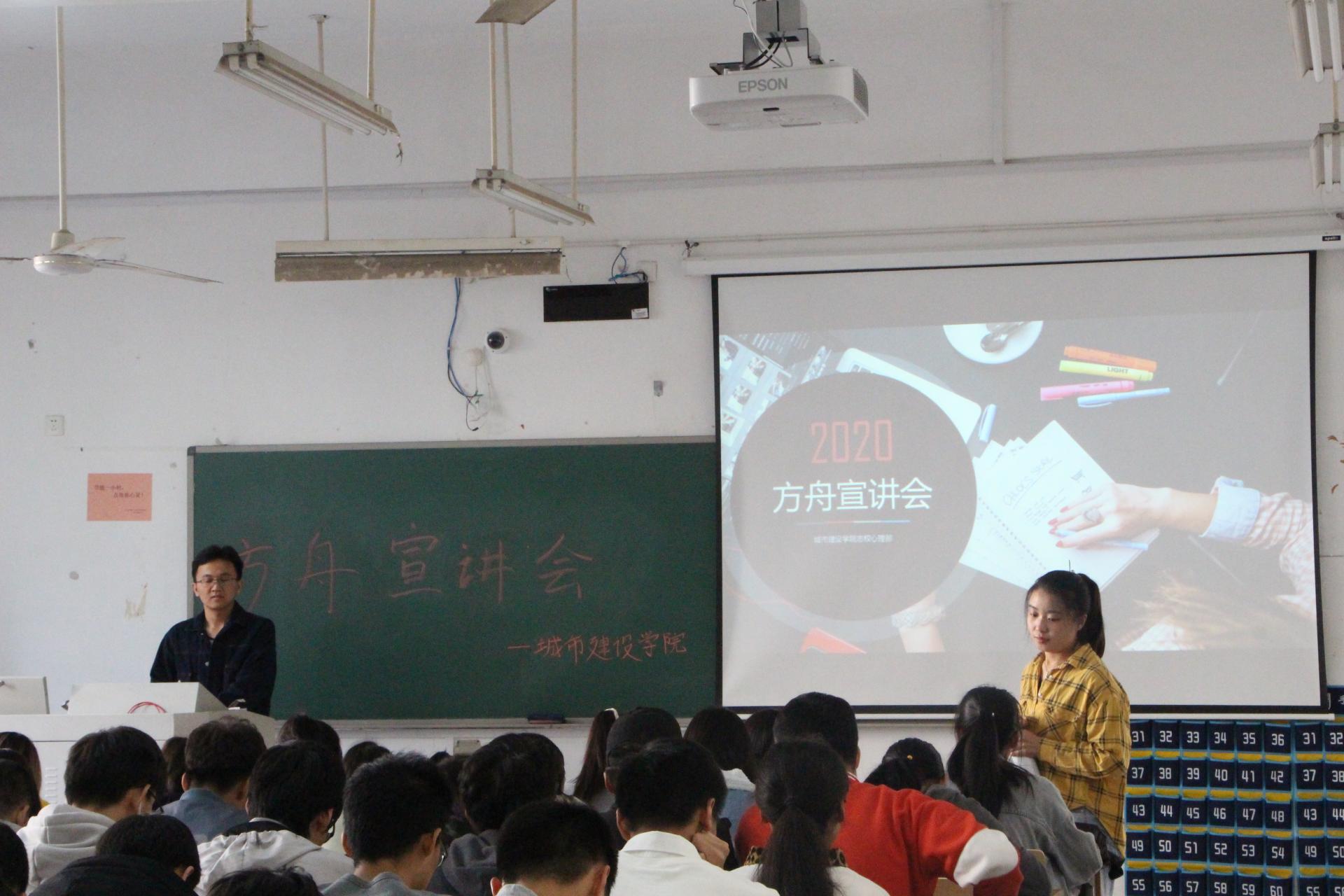 为了让新同学们了解方舟志愿活动,积极参与方舟志愿活动,太阳成tyc122cc员工会志权心理部于2020年11月11日下午在仁智楼412举行方舟宣讲会,城市建设公司20级同学参加。