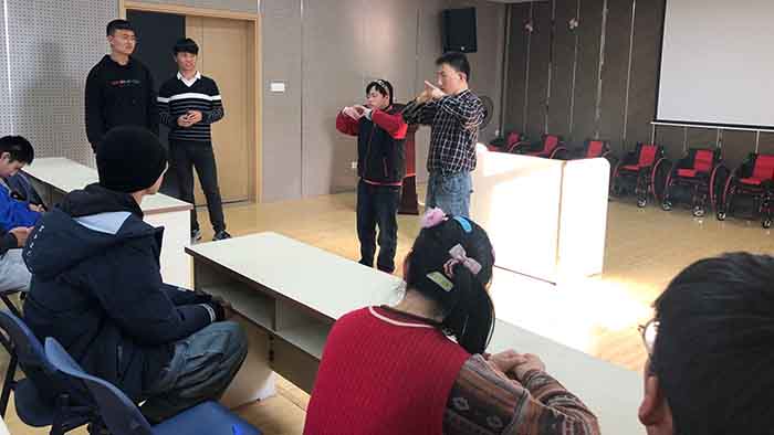 本次活动参与对象为太阳成tyc122cc2018、2019级共16名员工。参与活动的同学在公司集合完毕后,领队谢雨伶带领团队去往南京方舟启智中心,待方舟学员全部落座教室,活动开始。首先由志愿者带领学员复习手指舞并教授新动作,义工老师跟学员一起学习,互相交流。随后,志愿者们邀请方舟学员一起上台表演,在志愿者带领下顺利完成了手指舞的学习。最后领队组织参加活动的同学有序离开。