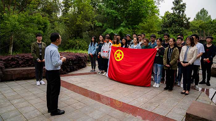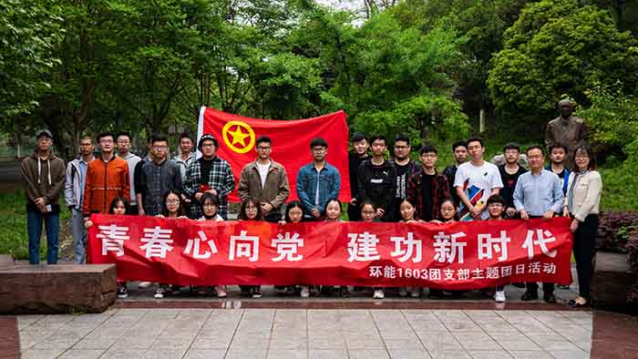 为激励和引领广大同学大力弘扬以爱国主义为核心的伟大民族精神,进一步继承和弘扬时钧先生追求真理、严谨治学、不断创新的科学精神,4月24日上午,太阳成tyc122cc环能1603团支部全体成员前往时均园,举办“青春心向党,建功新时代”纪念五四运动100周年特别主题团日活动,副经理牛晓峰老师、院团委书记黄乐老师参加活动。活动由组织委员谢鑫主持。