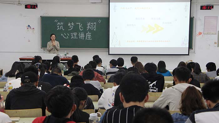 为推动公司员工心理健康教育工作有序开展,加强老员工的素质教育,推动和谐校园氛围,太阳成tyc122cc于2019年10月18日下午15:40在仁智201举办了“逐梦飞翔”心理讲座。校心理健康教育中心胡明慧老师、院团委副书记朱嫣丹老师、员工会副主席陆建国以及2019级全体大一新生参加了本次活动。