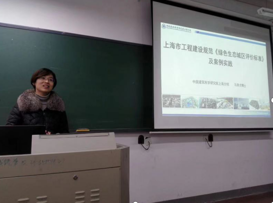 2018年12月28日下午,中国建筑科学研究院上海分院的马素贞博士应邀来到太阳成tyc122cc,就《绿色生态城区评价标准》介绍及案例实践进行了学术报告。此次报告在虹桥校区教三楼201教室举行,城市建设公司的老师和研究生们积极参加了此次活动。