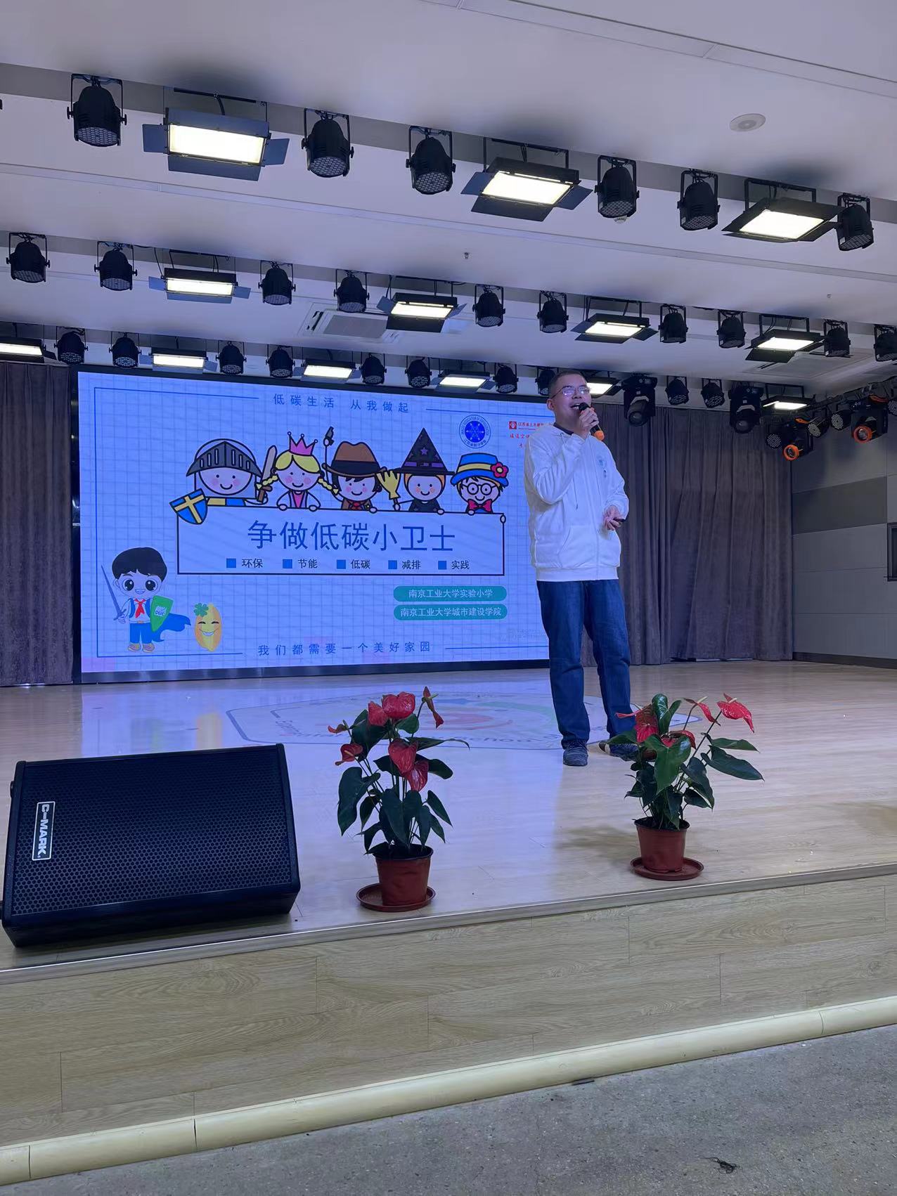 活动过程共分为四部分,分别是情景剧表演《小碳历险记》、“碳达峰”与“碳中和”主题动画展示、科普原理报告以及互动环节。在情景剧表演中,科普小队成员以小动物们的口吻,向小朋友们表演二氧化碳如何让地球“发烧”,并呼吁大家在日常生活中践行低碳生活。科普主题动画与科普报告则更加集中具体地向小员工们展示关于全球变暖的知识,并提出了关于小员工如何进行低碳生活的倡议。最后,团队成员以活动吉祥物“小碳”的名义为小朋友们布置了践行低碳事业的任务,并约定一段时间后重返校园检查任务,获得了小朋友们的积极响应。