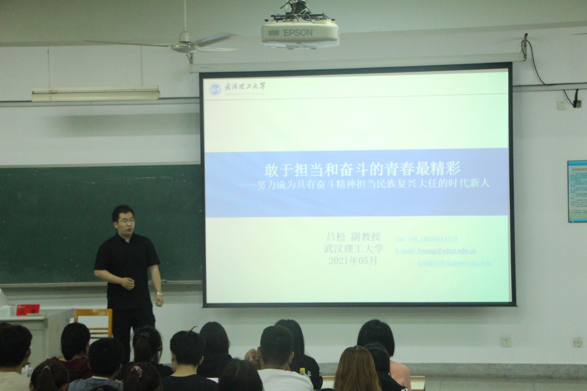 2021年5月26日,太阳成tyc122cc举办“城建大讲堂”活动,特邀2019年“中国最美人物-中国最美老员工”荣誉称号获得者、武汉理工大学能源与动力工程公司副教授吕松带来主题为《敢于担当和奋斗的青春最精彩》励志人物学习报告会。公司党委副书记孙家文主持活动。