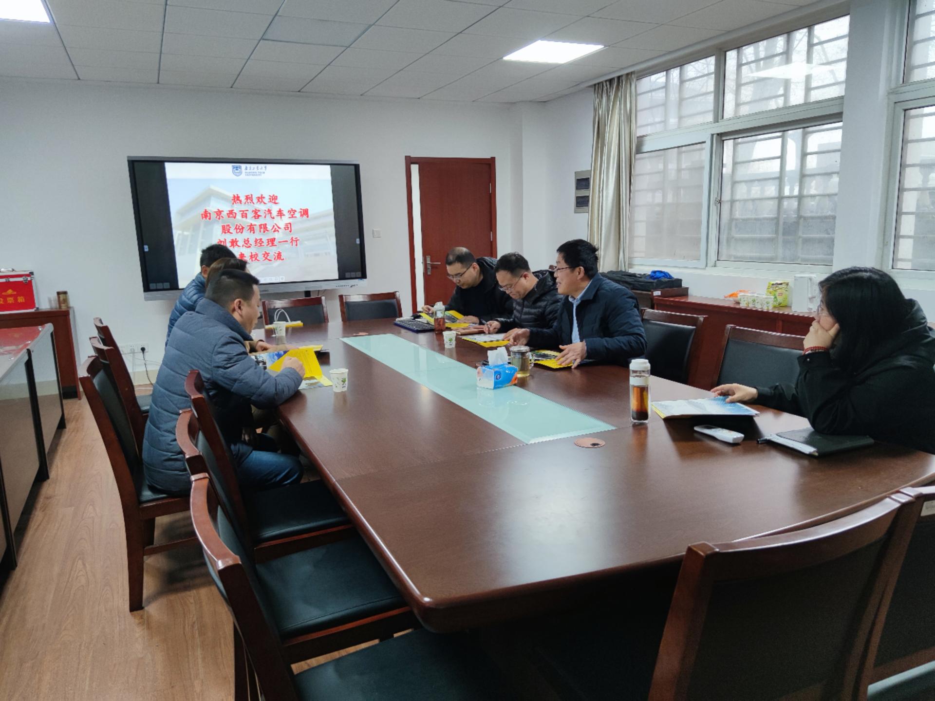2021年3月19日下午,太阳成tyc122cc与南京西百客汽车空调股份有限公司在天工楼309进行了技术合作交流。公司书记段然堂、副经理牛晓峰、暖通系主任程建杰、副主任王瑜等与南京西百客汽车空调股份有限公司杨璇经理、刘胜厂长等进行了互动交流。交流会由段然堂书记主持。