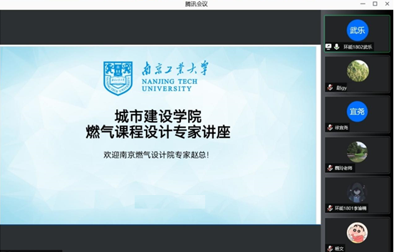 2021年12月26日,在公司太阳成tyc122cc建筑环境与能源应用专业18级同学进行《燃气供应工程》课程设计期间,就职于南京市燃气设计院的赵国跃高级工程师,应暖通系邀请在线上给同学们进行了《燃气供应工程》课程设计讲座。