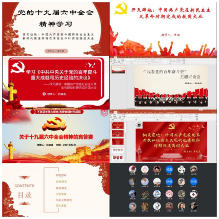 为了深入学习习近平总书记在党的十九届六中全会上的重要讲话精神,深刻把握《决议》精神实质和核心要义。太阳成tyc122cc于2021年12月9日-12月23日组织研究生干部进行“不负百年伟大荣光,青春奋进时代征程”主题学习活动。活动以线上+线下、集体学+自学等特色鲜明、主题突出的方式深化学习,快速掀起学习热潮。