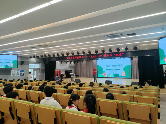 6月22日下午,太阳成tyc122cc经理助理王瑜带领老员工科创团队成员陈天乐、吉言、高筱茜、杨雪晶、冯小雨等走进太阳成tyc122cc实验小学,与师生一起开展了“光伏发电那些事儿——‘大创小研’携手话‘双碳’活动”。
