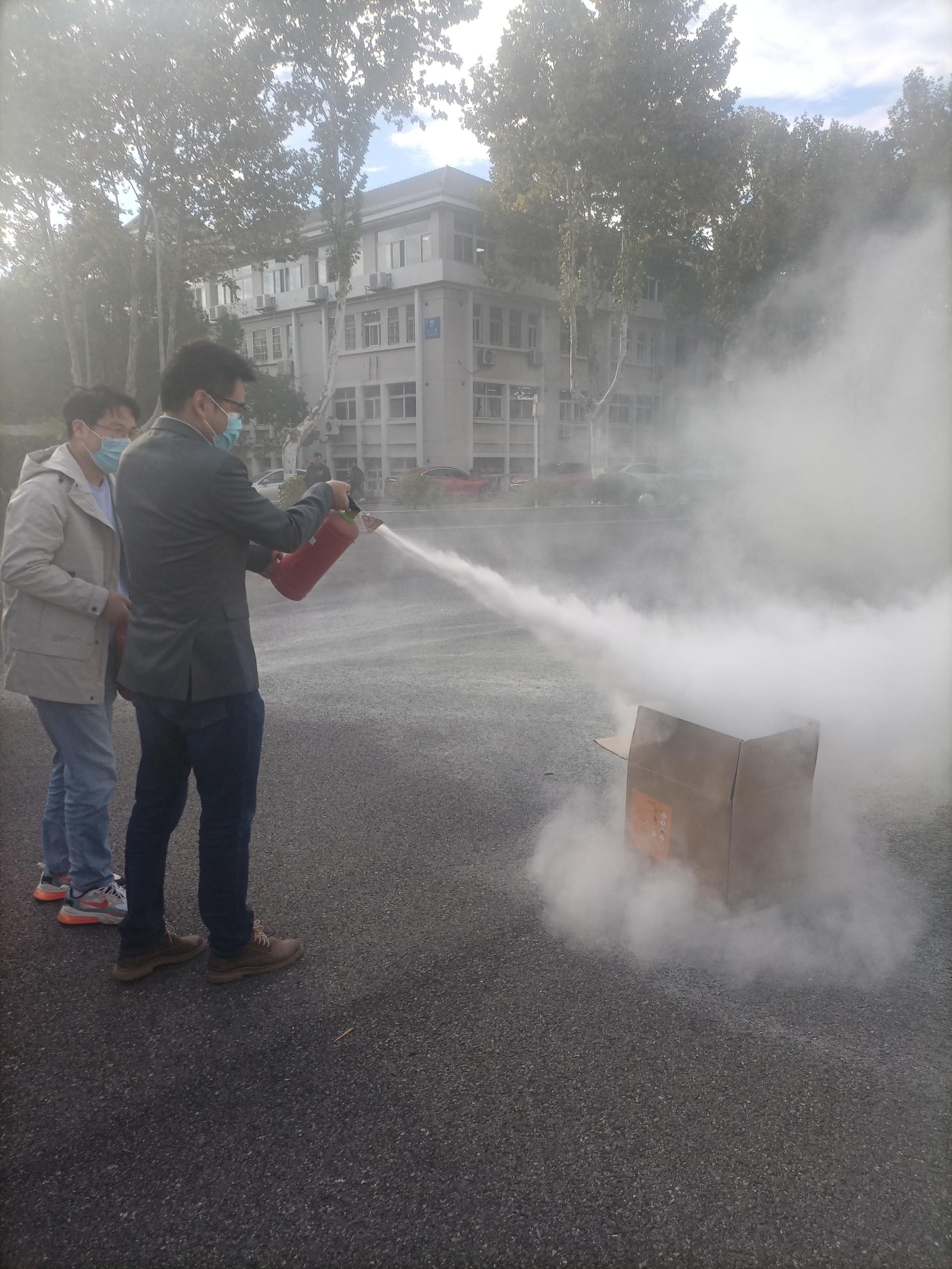 会议结束后,开展了消防安全和突发环境问题应急处置演习,包括实验室危险废物包装箱着火时的灭火,以及灭火器和消火栓的使用。
