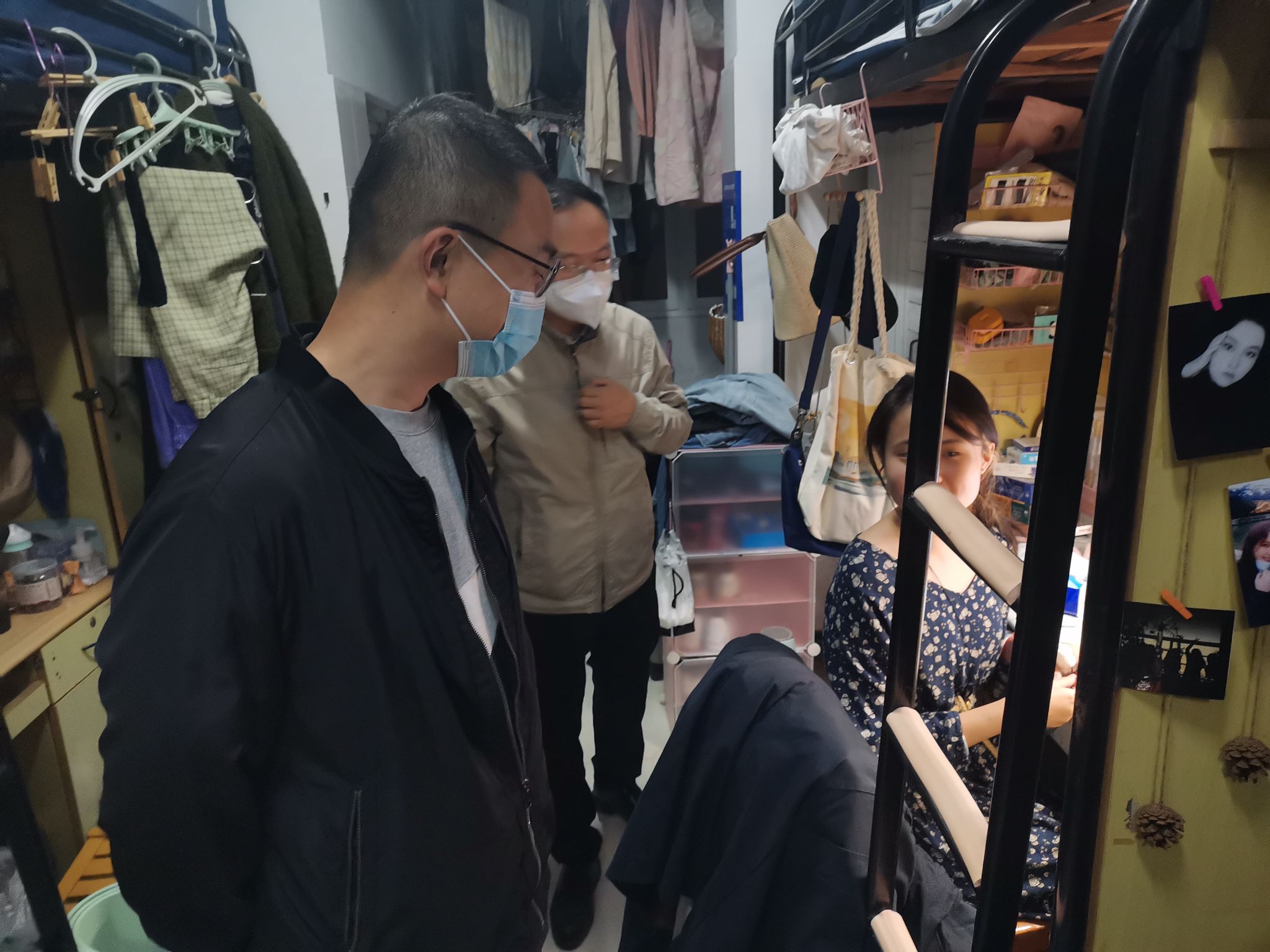 自封控以来,在校院两级党委的坚强领导下,各条战线疫情防控工作紧张有序开展。公司党政办公室与员工工作办公室26日连夜摸排统计教工与员工人员情况,做到各类人员底数清、情况明、状况翔,为开展抗击疫情后续工作打下坚实基础。27日,公司党政办和工会协同校外教工为在校区工作和战斗在抗疫一线的教工采购保障物资,送关心、送温暖。28日、29日,公司分别在线上召开了全院教职工大会、景星苑静默管理区域与隔离管理员工“面对面”座谈会。通过会议详尽介绍公司疫情防控的形势和政策,掌握师生动态,认真听取师生建议与反馈,收集“急、难、盼”等问题,切实做好服务与沟通工作。29日晚,公司领导班子成员、留校教职工与辅导员分组下沉到各员工宿舍,深入员工当中去,关心关爱员工,在交谈的过程中传递正能量 ,不时鼓励同学要有信心,要坚信胜利就在前方。