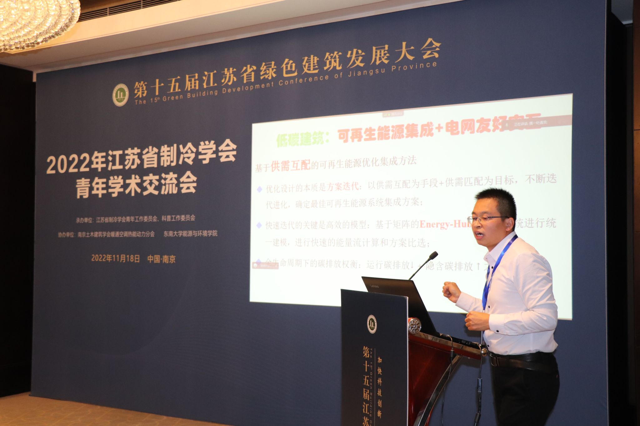 11月18日,江苏省制冷学会2022年青年学术交流会零碳专题论坛在南京香格里拉酒店雨花厅正式召开。省内高校师生,制冷空调和建筑环境、建筑设计与新能源等相关行业企业的青年科技工作者,以及长三角地区周边省市的相关领域青年学者共计100余人参加本次会议,就“双碳”目标下制冷暖通空调和零碳建筑的最新技术路径和成果进行探讨和互动交流。