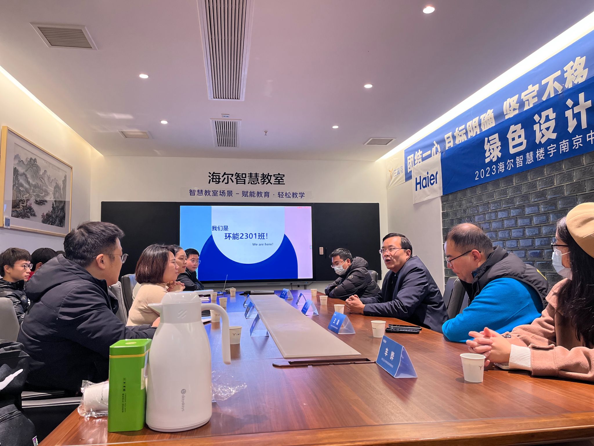 首先,张健部长和同学们一起参观海尔智慧楼宇和智能家居体验店,近距离了解创造智能舒适人居环境的专业前沿知识。在班会交流过程中,海尔集团南京分公司陈芳部长向同学们讲授了”敬业报国,追求卓业”海尔精神、简要介绍了海尔在高效可持续绿色智慧建筑产业发展现状。随后,张健部长与同学们进行了深入的交流互动。他充分肯定了此次探索专业前沿、促进学业发展的班会,鼓励班级多开展主题鲜明、内容丰富、形式多样的班级活动,使同学们真正理解专业的内涵,做到为专业发展贡献自己的力量。他还激励同学们要从此次的实践班会中受到启发,认真思考接下来的大学和人生规划,以能够成为专业前沿的引领者为目标而努力。