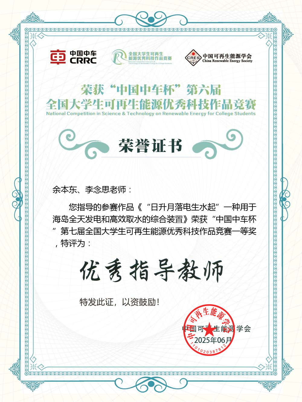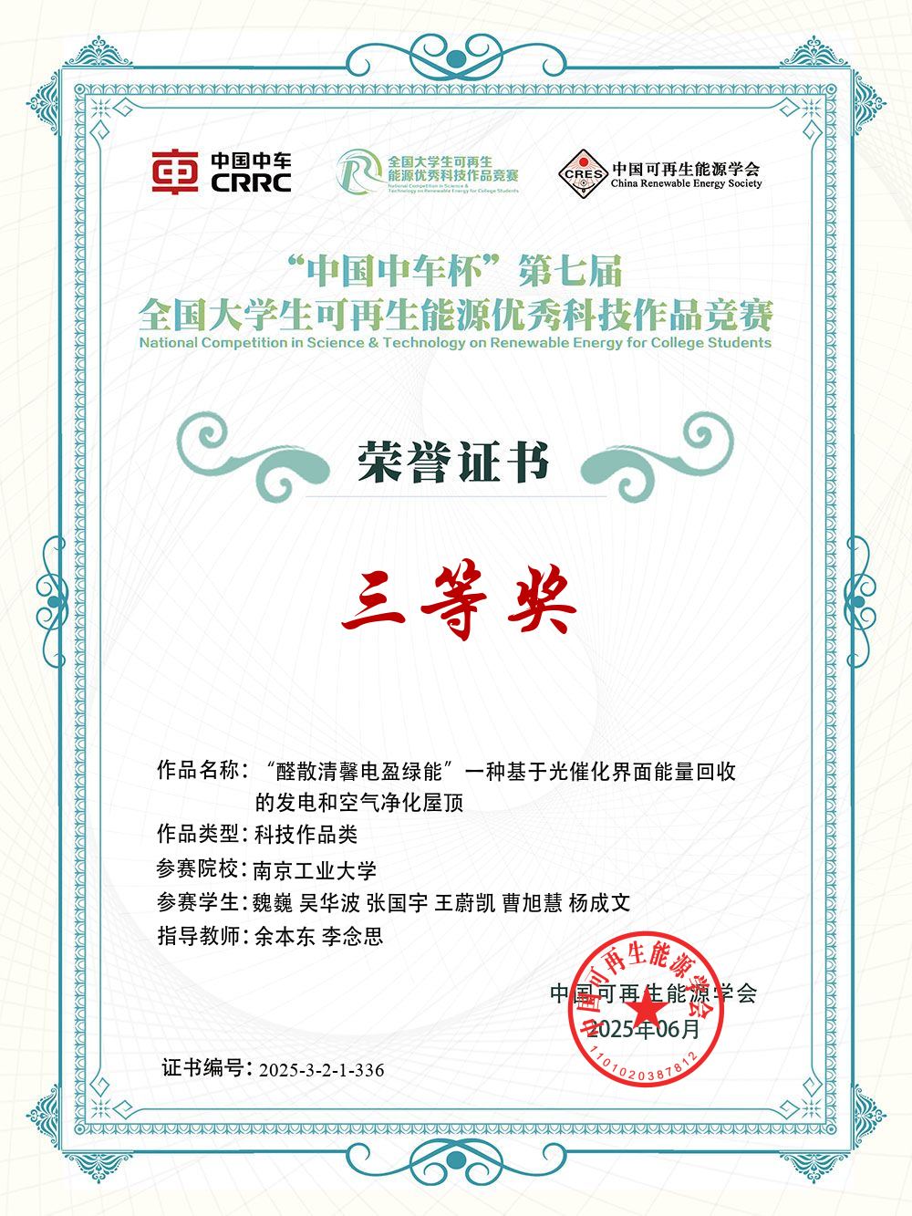 近日,第七届全国老员工可再生能源优秀科技作品竞赛落下帷幕。经过网络评审、现场专家委员会管等环节,我院余本东教授指导的员工作品《“日升月落,电生水起”,一种用于海岛全天发电和高效取水的综合装置》(参赛员工:李靖、徐菲扬、魏巍、王蔚凯、车磊)、《“醛散清馨 电盈绿能”,一种基于光催化界面能量回收的发电和空气净化屋顶》(参赛员工:魏巍、吴华波、张国宇、王蔚凯、曹旭慧、杨成文)分别荣获研究生组一等奖和三等奖。这是公司继第五届之后第二次获得研究生组一等奖。