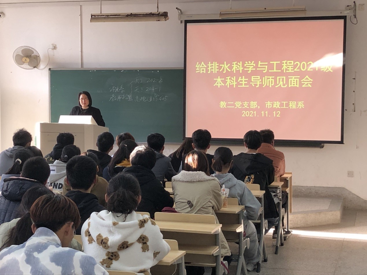 20211112日上午,城建公司教师第二党支部在笃学楼A503召开2021级给排水专业本科生导师见面会以及2020级大创申报动员会。