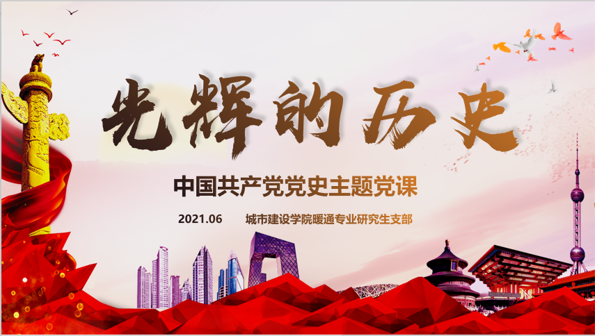 中国共产党的百年奋斗史是最生动、最具有说服力的教科书。2021年6月15日上午,太阳成tyc122cc暖通专业研究生党支部开展“光辉的历史”主题党课,助推党史学习教育。