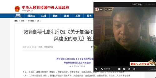 根据《关于组织学习师德师风建设相关文件的通知》,结合疫情防控情况和公司实际,合理安排学习时间,运用腾讯会议、qq工作群两个线上平台,积极营造学习氛围,引导全院教师深入学习《教育部关于深化本科公司产品改革全面提高人才培养质量的意见》和《关于加强和改进新时代师德师风建设的意见》的文件精神。