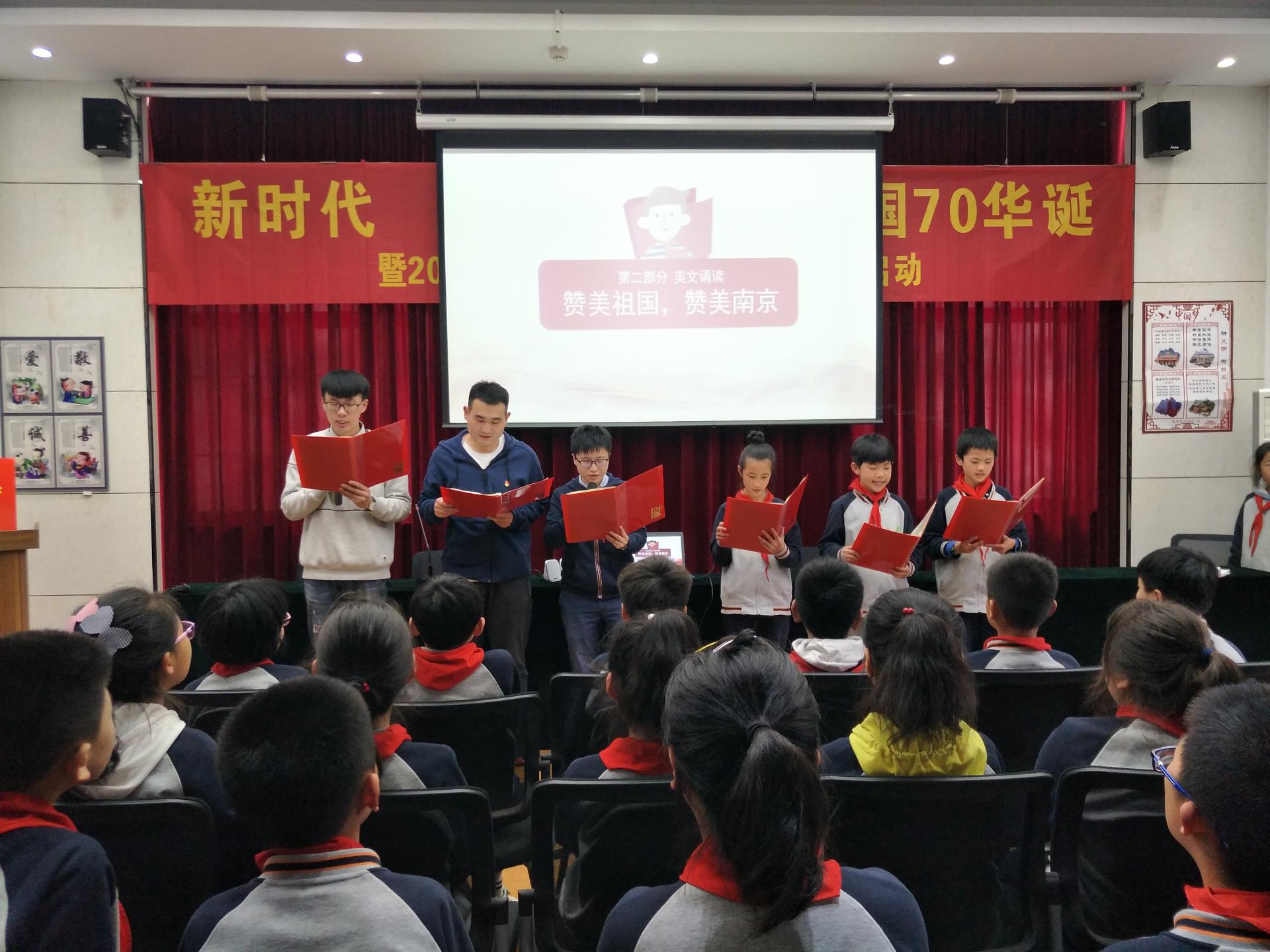 活动的第一部分由鼓楼区教育关工委讲师团讲师诠释五星红旗的含义,包括图形、颜色、内涵并解读“五星红旗高高飘扬”主题课件。社区20 名小员工在讲师的带领下积极认真,学习激情高涨,同时研究生党员也参与问答互动。接着,由城建公司研究生第一党支部党员分两组各带领三名小员工朗诵热爱祖国和赞美南京的诗句,各组员工朗诵时抑扬顿挫,富有感情。随后,由将军庙社区的两位老党员依次介绍了祖国发展对居民生活带来的改变和治理金川河的工作服务经验。活动在全体起立共唱《我和我的祖国》的歌声中结束。