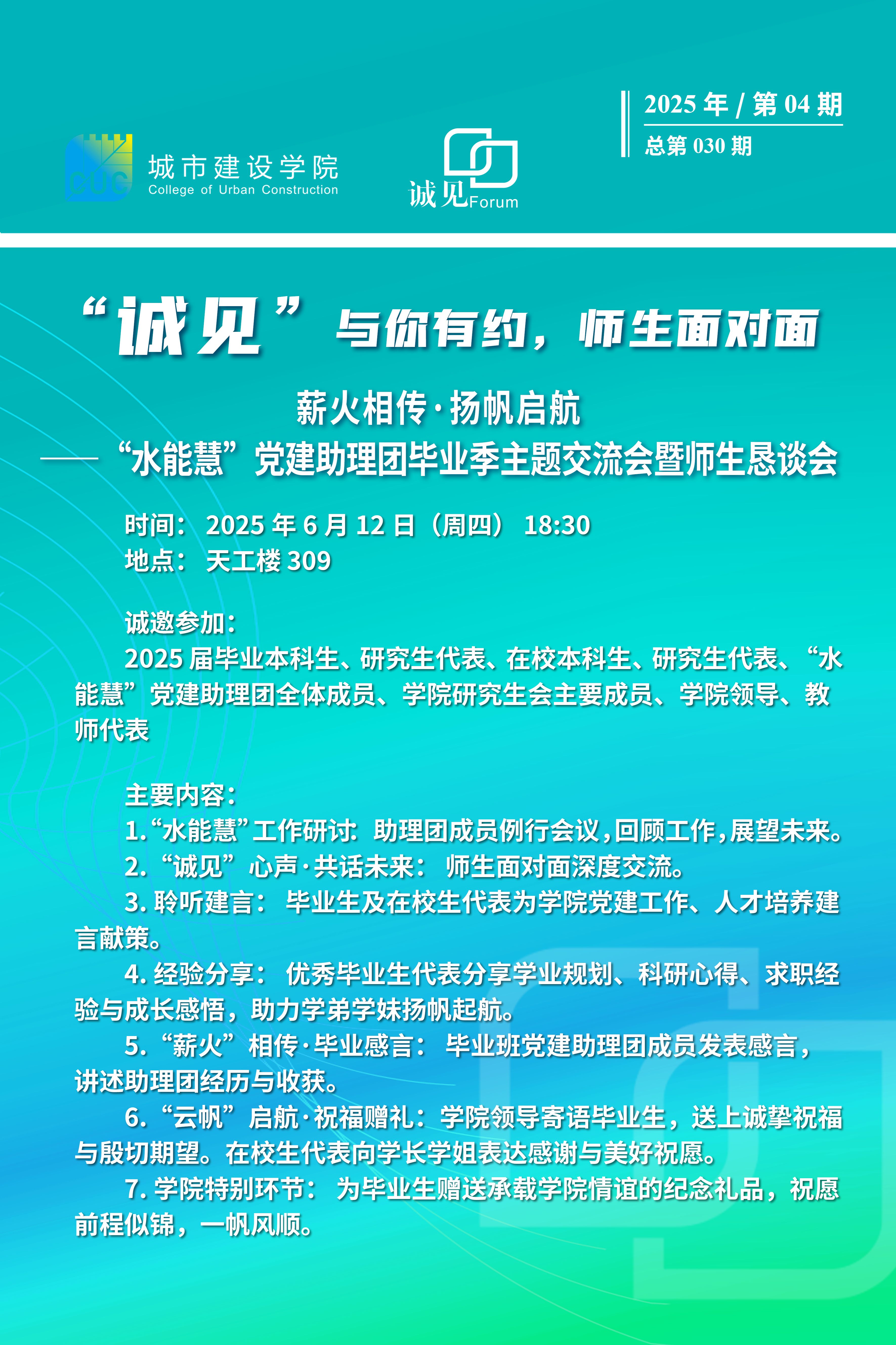 (总第030期) “诚见”明德讲堂-与你有约,师生面对面(第004期)-“水能慧”党建助理团毕业季主题交流会暨师生恳谈会